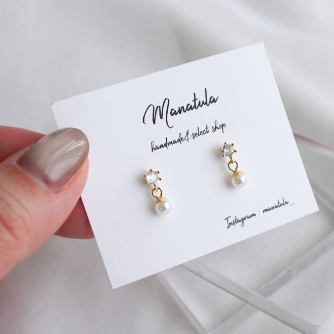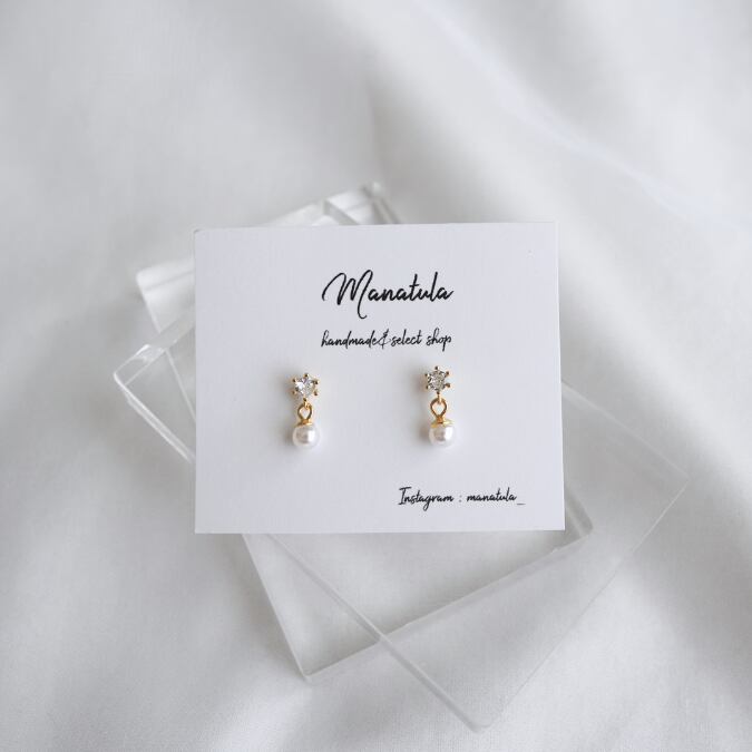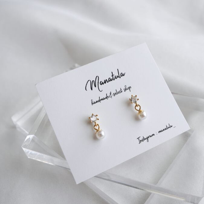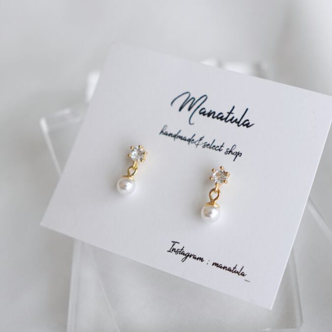 小粒ストーン×パールピアス