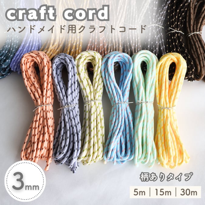 【3mm】クラフトコード(15m)|柄ありタイプ