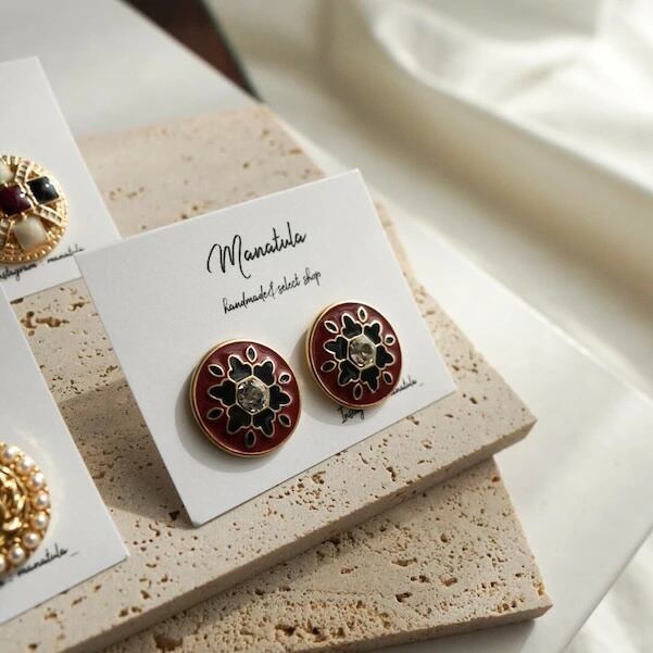 ボタンをアクセサリーにしたようなデザインで